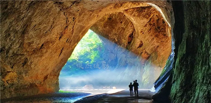 15米,宽24米,它是由外源水和地下水长期冲蚀而形成的典型的管道型洞。此处传说就是黄仙布道之处,可谓福地洞天。如此巨大的洞入口,其它溶洞也是难得一见,因而称它为“洞口雄风”。